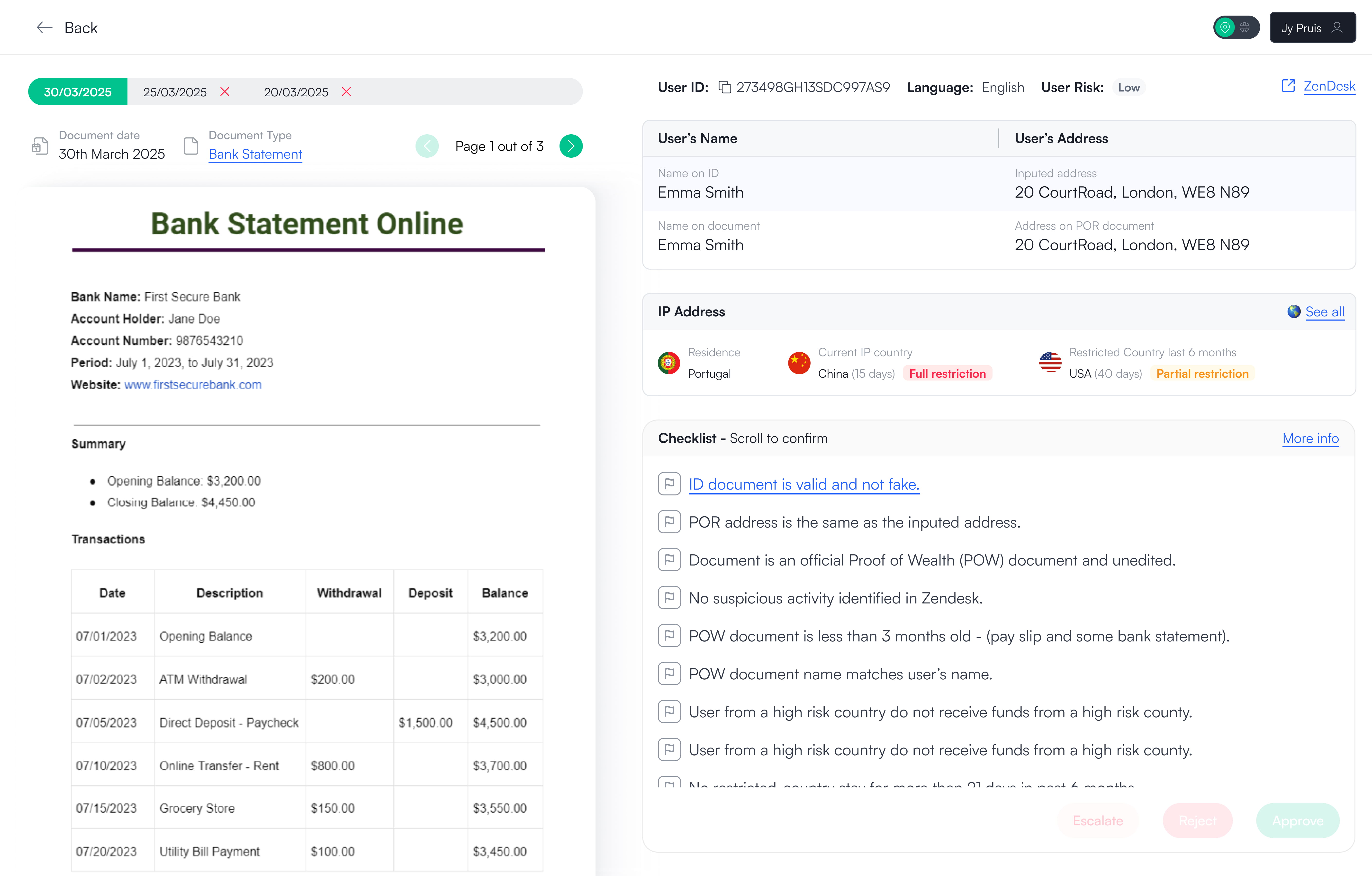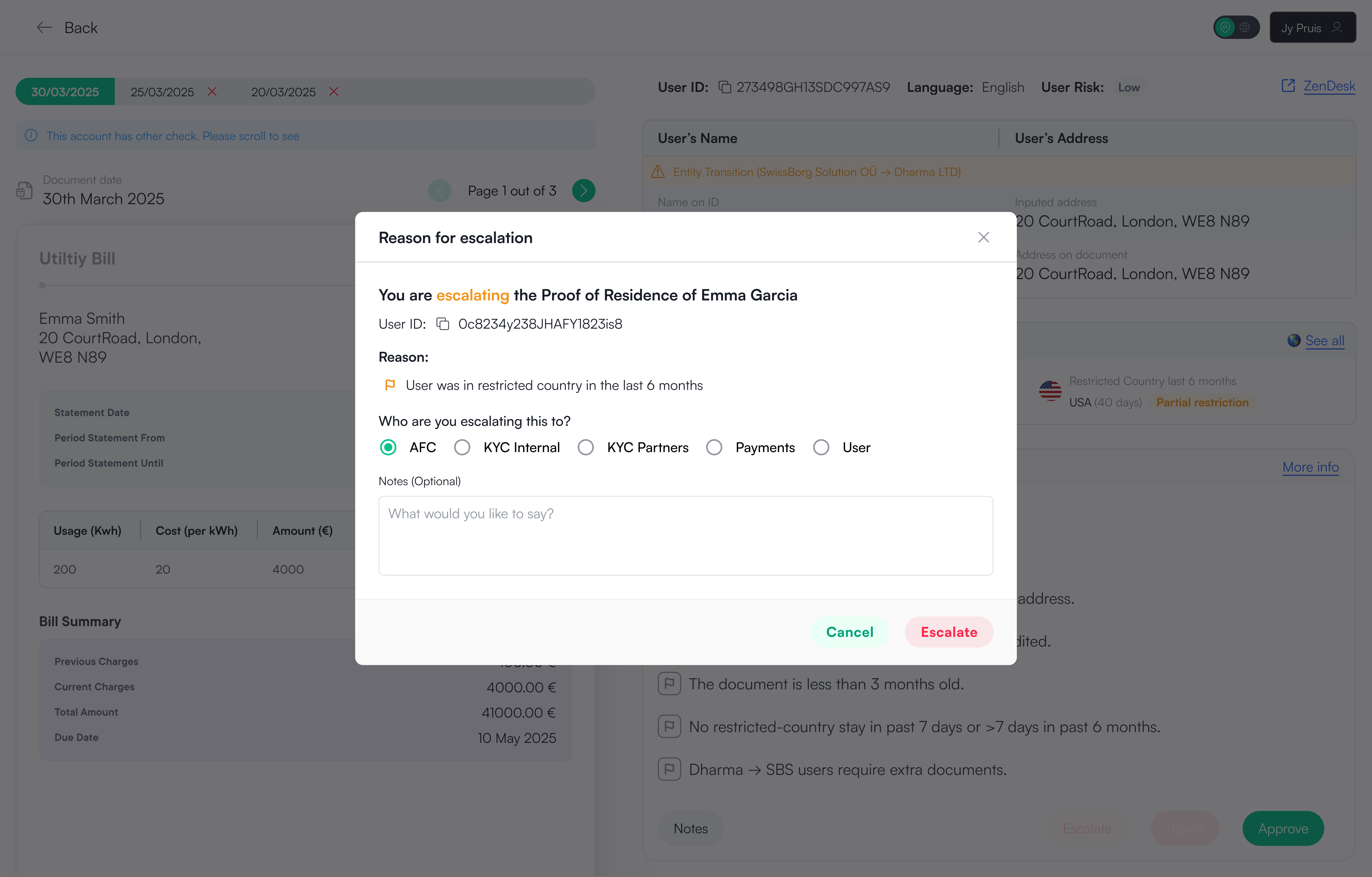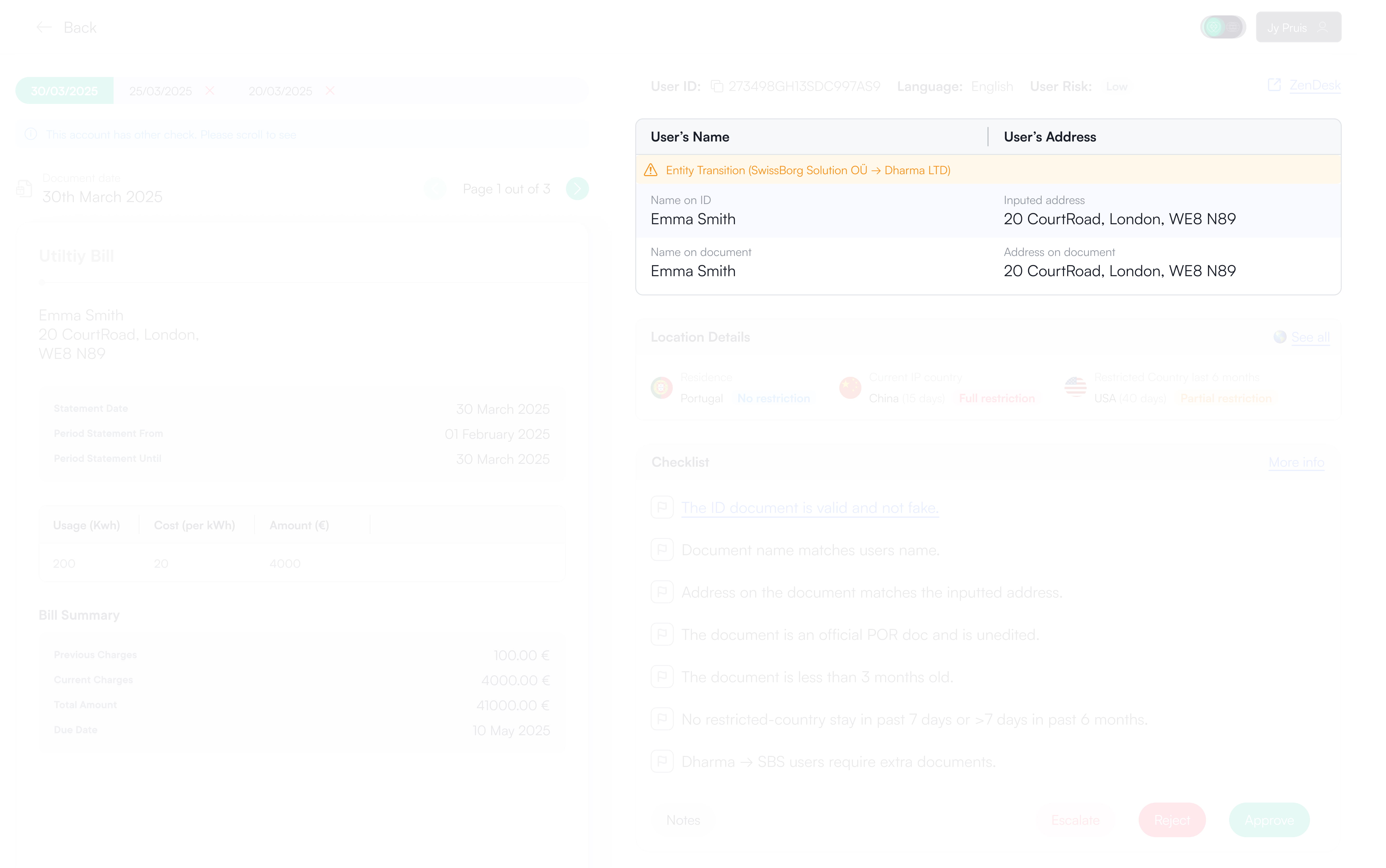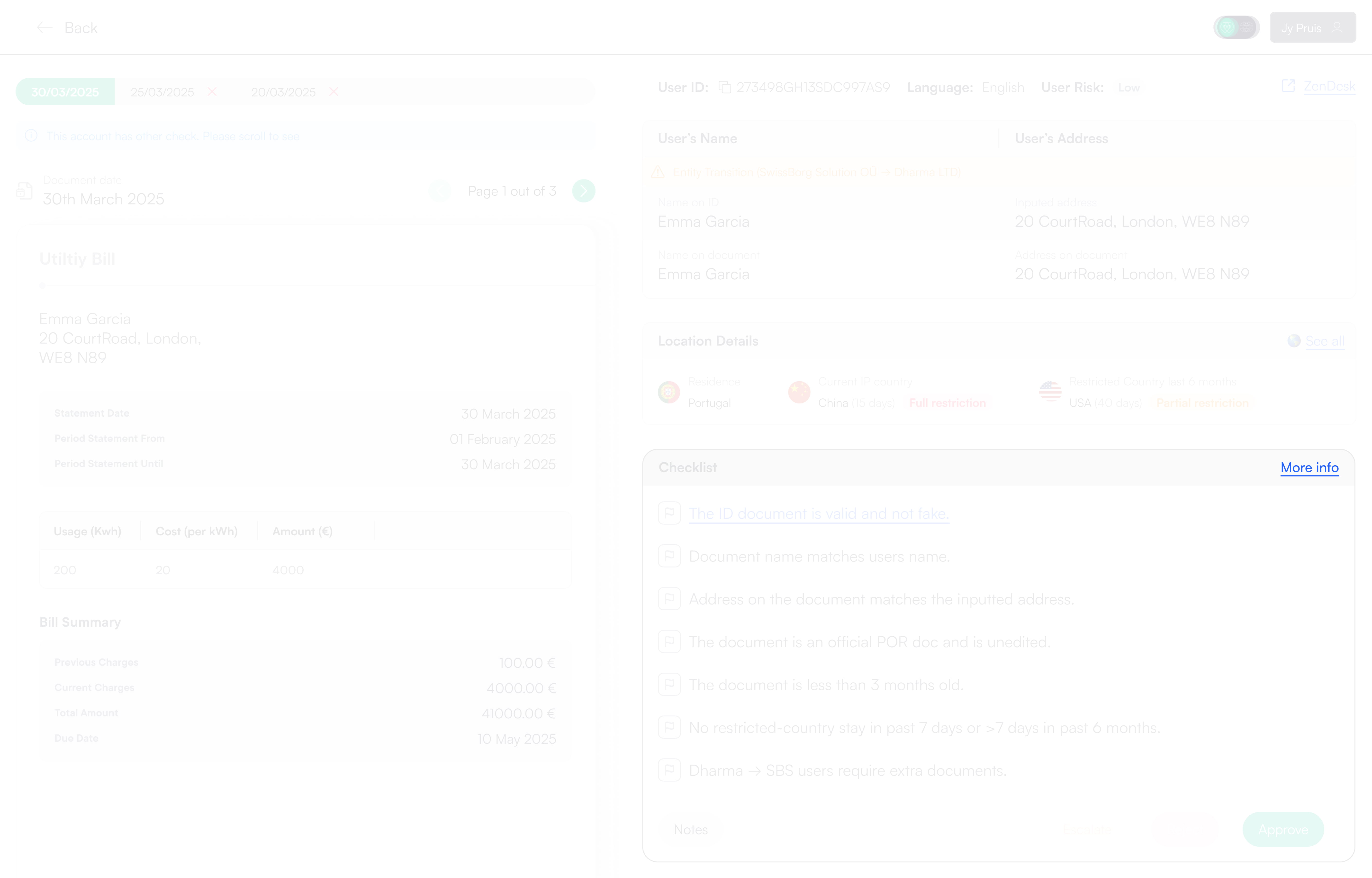 Even though agents reviewed one application type at a time (Proof of Identity, Proof of Residence, or Proof of Wealth), they were still exposed to a large amount of unrelated information. With no clear review order, agents had to decide for themselves what to check next, increasing handling time and slowing down decisions.